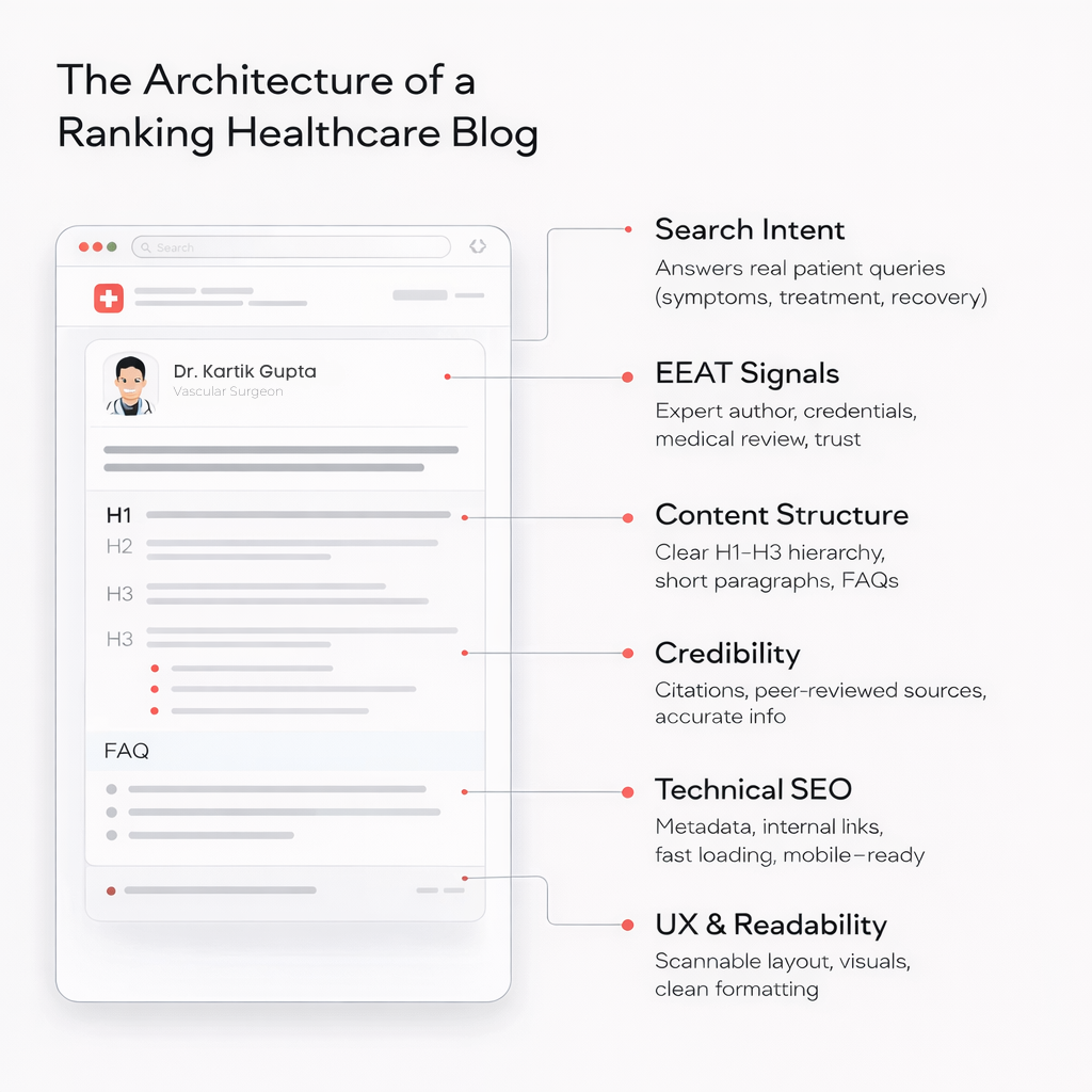 Ranking a healthcare blog on Google requires a deliberate structure that combines search intent, content architecture, credibility, and strong technical foundations.